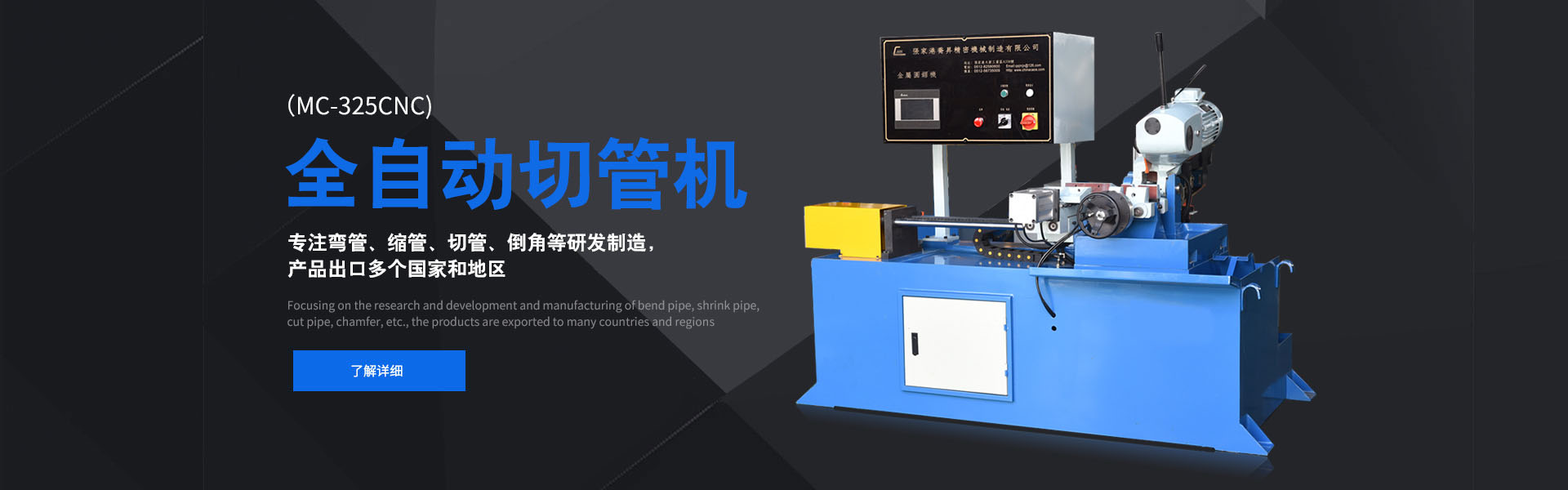 張家港宏格利機(jī)械有限公司是從事彎管機(jī)、縮管機(jī)、倒角機(jī)、切管機(jī)、去毛刺機(jī)等管材設(shè)備的生產(chǎn)企業(yè),位于中國經(jīng)濟(jì)為發(fā)達(dá)的長三角經(jīng)濟(jì)圈,全國知名的國際環(huán)花園城市-江蘇張家港。周臨滬、寧、杭、蘇、錫、常等經(jīng)濟(jì)腹地,臨江達(dá)海交通物流極為便利,為宏格利機(jī)械的發(fā)展提供了無限可能。宏格利公司具備雄厚的設(shè)計(jì)開發(fā)能力,擁有高精密的生產(chǎn)檢測設(shè)備,在多年生產(chǎn)基礎(chǔ)上,精益求精,不斷改進(jìn)創(chuàng)新,先后研制開發(fā)了微電腦控制彎管機(jī)、系列管端成型機(jī)、系列金屬圓據(jù)機(jī)、鉚接機(jī)、磨齒機(jī)等自動化管材加工機(jī)械。為汽車、摩托車、體育健身器材、鋼管家具、旅游休閑用品、水暖衛(wèi)浴等行業(yè)的金屬管類制品的加工提供了成套的機(jī)械設(shè)備,并替代了進(jìn)口。 公司建立全國性的售前、售后營銷服務(wù)體系,悉心為客戶服務(wù),始終提供高品質(zhì)效率高的產(chǎn)品及迅捷滿意的服務(wù)。公司恪守“科技創(chuàng)新,品質(zhì)為尊,超越服務(wù)”為企業(yè)理念,期待與海內(nèi)外客戶攜手同心,共創(chuàng)錦繡前程。